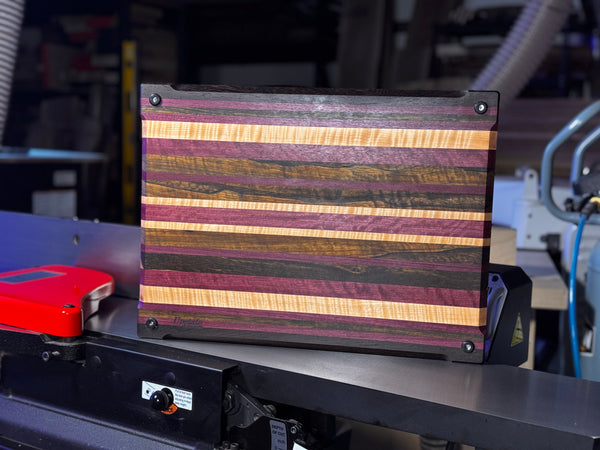 Hardwoods used - purple heart, wenge, black limba and curly maple
